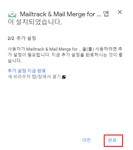 위 사진과 같이 안내되는 절차를 따라 진행하면 최종적으로 부가기능이 설치되었음을 확인할 수 있습니다.