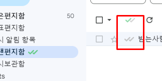 위 사진과 같이 쌍으로 된 체크 아이콘이 표시되었다면 잘 적용된 것입니다. 하나만 색이 입혀진 것은 보내졌지만, 아직 상대방이 메일 확인을 하지 않은 것을 표시합니다. 만약, 상대방이 메일을 확인했다면 두개의 체크모양 아이콘이 모두 색상으로 표시되게 됩니다. 아래는 예시입니다.